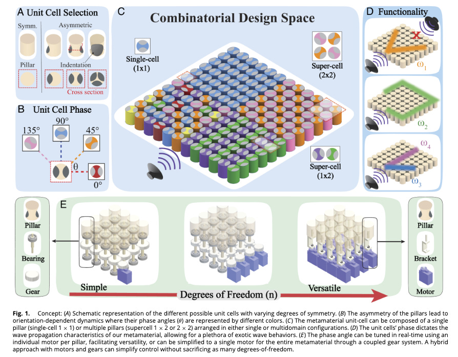 Researchers at the University of Connecticut have now demonstrated a way around this, with a real-time programmable acoustic metamaterial built from asymmetric pillars with indentations that can rotate freely in the plane at any angle. Watch the video here shared by UConn! Instead of redesigning or refabricating the structure, the behavior of the material can be changed simply by rotating its components.