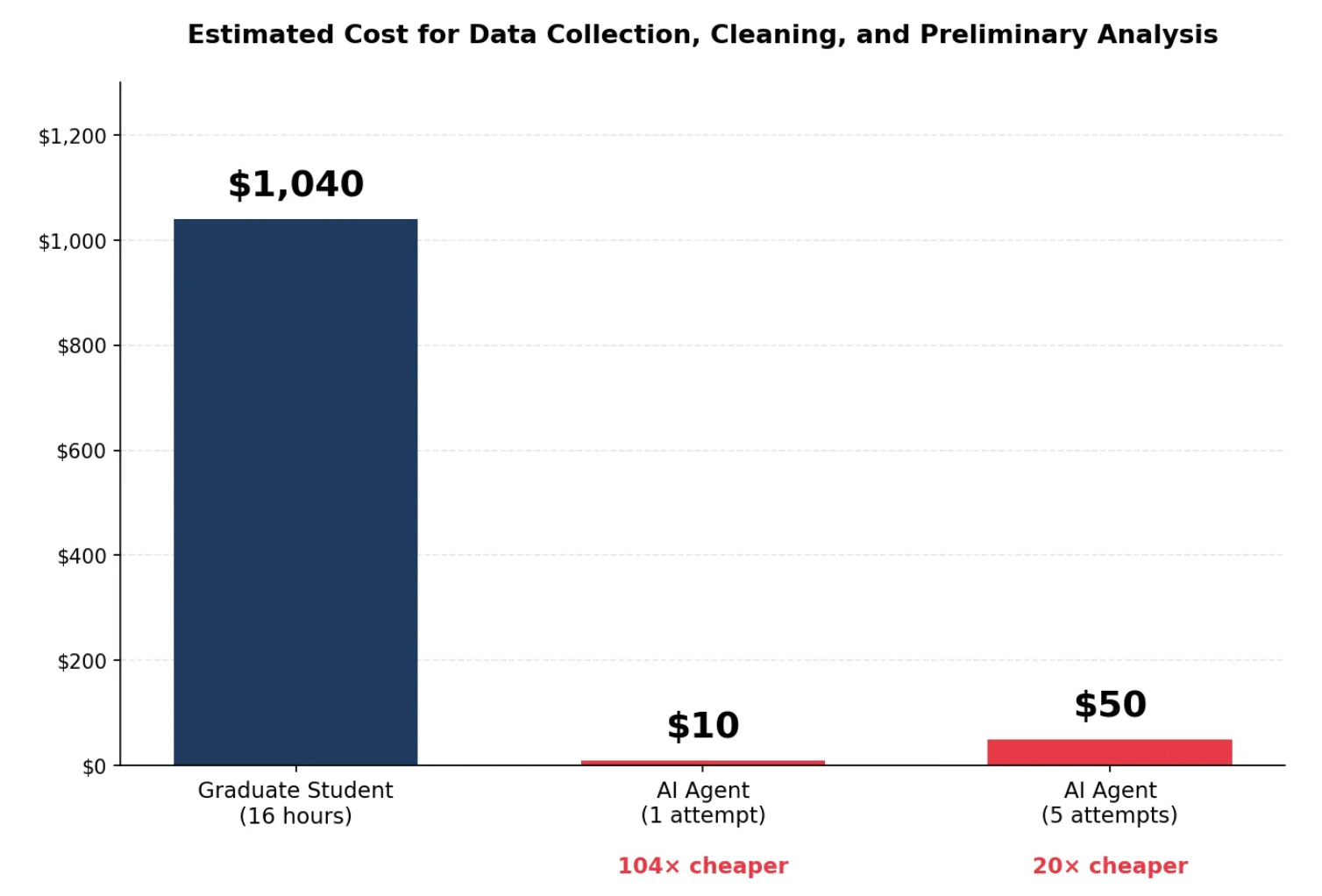 Hall’s other big vision culminates in a prototype he calls a “research swarm”: AI agents propose studies, an “LLM council” ranks them, agents execute the top candidates, and another LLM measures the output. Given how the economics of research have shifted, it is plausible to set-up this idea very cheaply.
